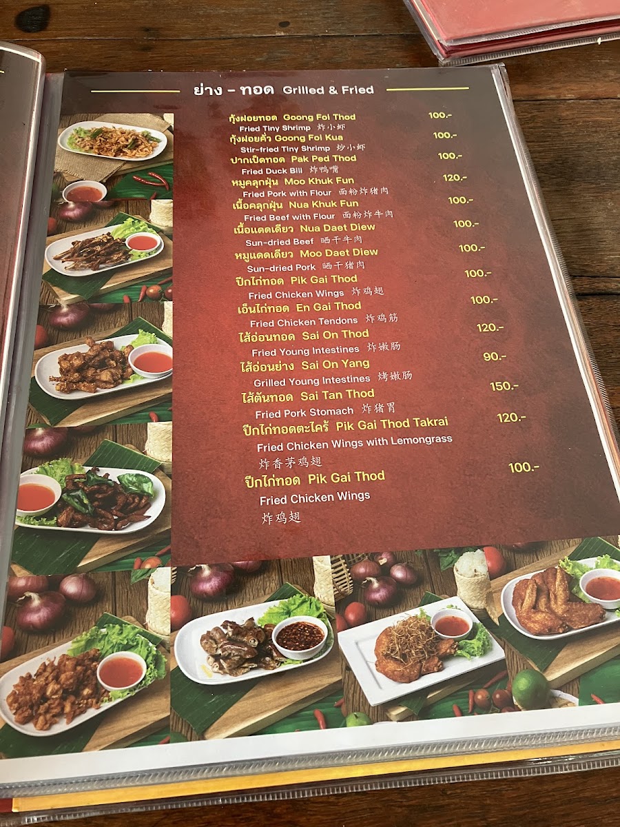 Guests can expect standout dishes like Som Tum (papaya salad), crispy fried chicken wings, and traditional Tom Yum Goong, alongside more unique offerings such as fried dried squids and savory grilled pork intestines. The food pairs naturally with cold beers like Singha, creating a laid-back atmosphere where tastes and textures encourage leisurely enjoyment.